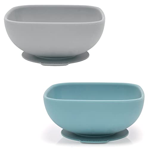Vicloon Assiettes en Silicone avec Ventouse pour Bébé,2PCS Assiette Ventouse Pour Bébé, Pour les tout-petits et l'auto-alimentation- Passe Au Lave-vaisselle et Au Micro-ondes(Gris Bleu/Vert)