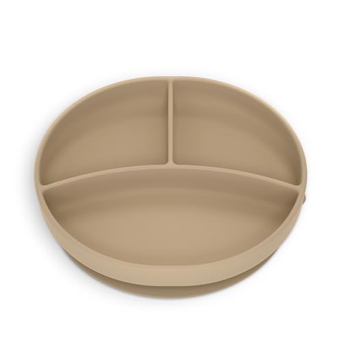 Suavinex, Assiette pour Bébé avec Ventouse, en Silicone avec Compartiments, Anti-Renversement, pour l'Alimentation Complémentaire et la DME, Compatible Lave-vaisselle et Micro-ondes, +6 Mois, Beige