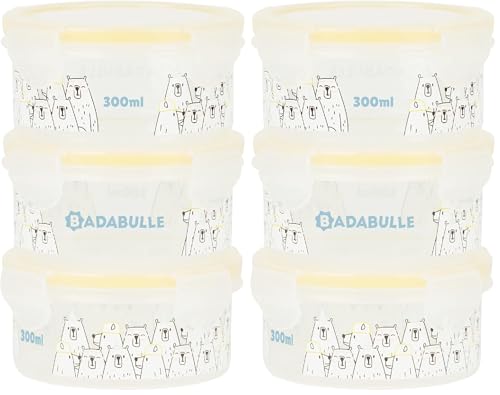 Badabulle Boîtes de Conservation Bébé Maxibox, Lot de 6x300ml, Grande Contenance, 100% Hermétiques avec Joint en Silicone, Passent au Micro-Ondes & au Lave-Vaisselle, Ours