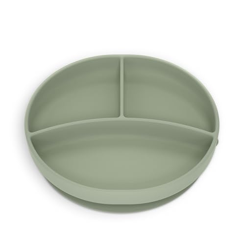 THERMOBABY - Assiette Compartimentée En Silicone - Assiette Ventouse Pour Bébé - Incassable - Antidérapante - Passe Au Lave-Vaisselle Et Au Micro-Ondes - Vert Sauge