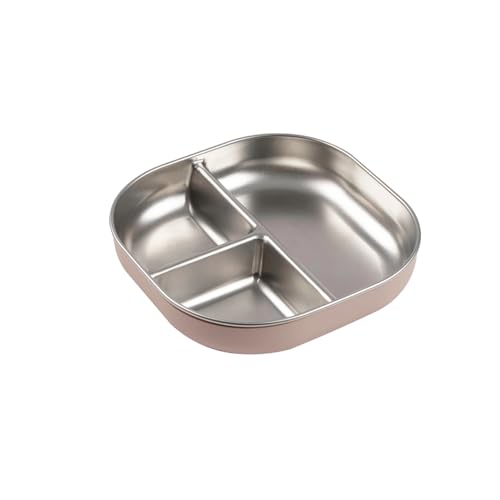 BÉABA, Assiette Bébé Compartimentée en Inox Micro-ondable – Antidérapante avec Housse Silicone, Incassable, Bords Hauts Ergonomiques, Passe au Lave-Vaisselle, Barpe à papa
