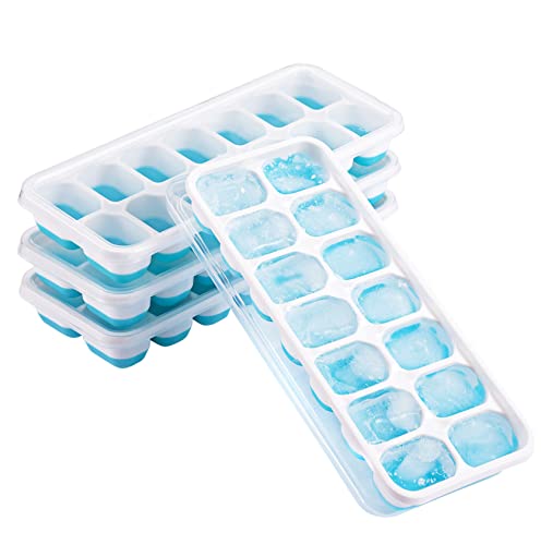 Lot de 4 bacs à glaçons en silicone et 14 bacs à glaçons avec couvercle, sans BPA, passe au lave-vaisselle, facile à desserrer, empilable, durable pour le café, la nourriture pour bébé
