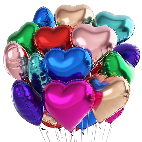 Ballon Coeur Coloré 24 pcs, Baudruche en Forme de Coeur 5 couleurs,Ballon Helium Coeur pour Anniversaire, Mariage, Saint Valentin, Douche de bébé, décoration de fête de Noël(5 couleurs)