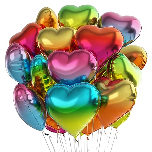 Ballon Coeur Coloré 24 pcs, Baudruche en Forme de Coeur dégradé de couleur,Ballon Helium Coeur pour Anniversaire, Mariage, Saint Valentin, Douche de bébé, décoration de fête(Dégradé de couleur)
