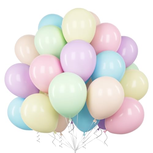 Teselife Ballons Pastel, 50Pièces 12Pouces Macaron Bleu Rose Vert Jaune Violet Orange Latex Ballon Arche Guirlande Fille Femmes Anniversaire Mariage Proposition Valentin Douche Nuptiale Diplôme Déco
