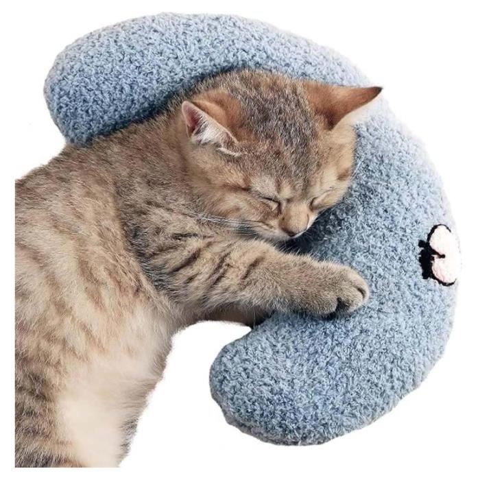 Coussin de valériane pour chat - Coussin doux et moelleux - En forme de U - Idéal pour dormir - Bleu