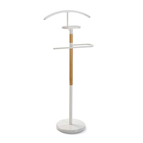 relaxdays Valet de Chambre, pour Costume & Pantalon, mélange Bois-métal, Portant vêtements, 110x46x19 cm, Blanc/Nature