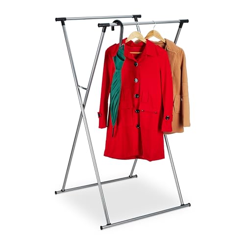 Relaxdays Portant à vêtements Extensible, HxLxP: 139x135x95 cm, 2 tringles, pour l’entrée, Valet Pliable, métal, argenté