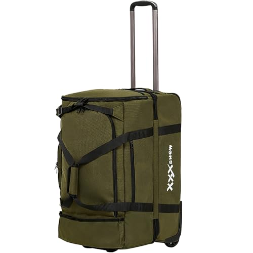 Boniffyy 90L/100L Valise De Ski pour Voyage Imperméable Sac À roulettes Skis Snowboard Trolley Grande Capacité Bagage Sacs À Dos pour Équipement Sportif Suitcase Bag (Vert armée, 100L)
