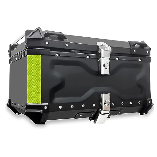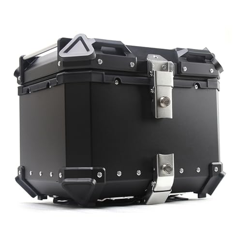 CcacHe Top Case Box Moto Aluminium, 45L 55L 65L 80L 100L Coffre De Moto Étanche Topcase Valise pour Moto avec 2 Clés Et Poignée, pour Rangement Casques (Color : Black, Size : 65L Motorcycle Trunk)