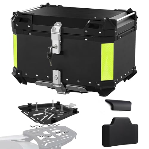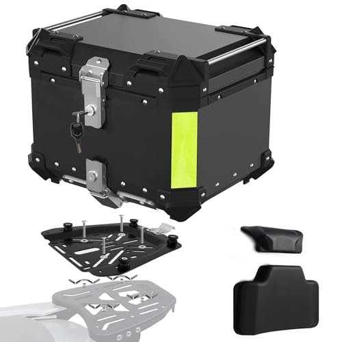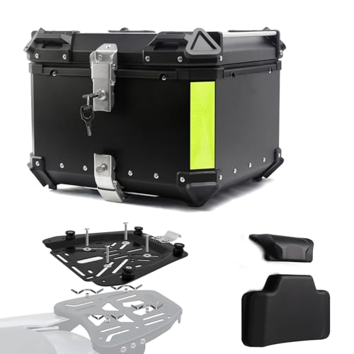 45L 55L 65L 80L 100L Top Case Coffre Moto,Valise pour Moto en Aluminium étanche,Top Cases pour Moto,Valise arrière pour Scooter ou Moto,avec Plaque de Montage et Dossier(Black,65 L)