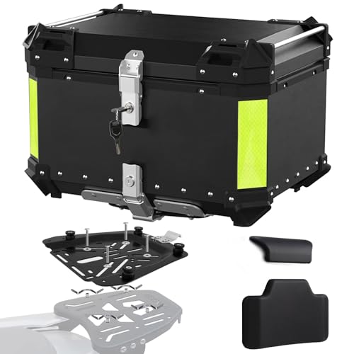 45L 55L 65L 80L 100L Top Case Coffre Moto,Valise pour Moto en Aluminium étanche,Top Cases pour Moto,Valise arrière pour Scooter ou Moto,avec Plaque de Montage et Dossier(Black,80 L)
