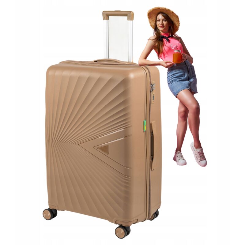 Grande valise de voyage beige à roulettes, légère et résistante, 100 L, Wowbag 7905 L champagne