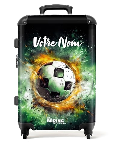 NoBoringSuitcases.com Valise Enfant, Grande Valise, Valise Enfant Garcon, Valise Enfant Roulette, Serrure TSA, Valise 23kg, Taille M, Valise Grande Taille (67cm - 72L), (Football avec Fond Vert)