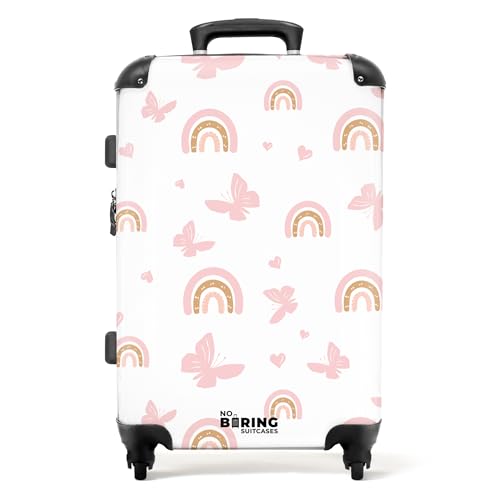 NoBoringSuitcases.com Valise Enfant File, Grande Valise, Valise Enfant Fille, Valise 23kg Soute, avec TSA, Valise pour Enfant, Valise Moyenne (67cm - 72L) (Arcs-en-Ciel Roses, Papillons - Blanc)