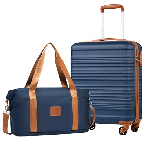 Suitline - Set de valises pour EasyJet, 2 pièces trolley sous-siège 45x36x20 cm + valise de voyage extensible 66 cm pour 15-20 kg de bagages, petite + grande valise,bleu foncé