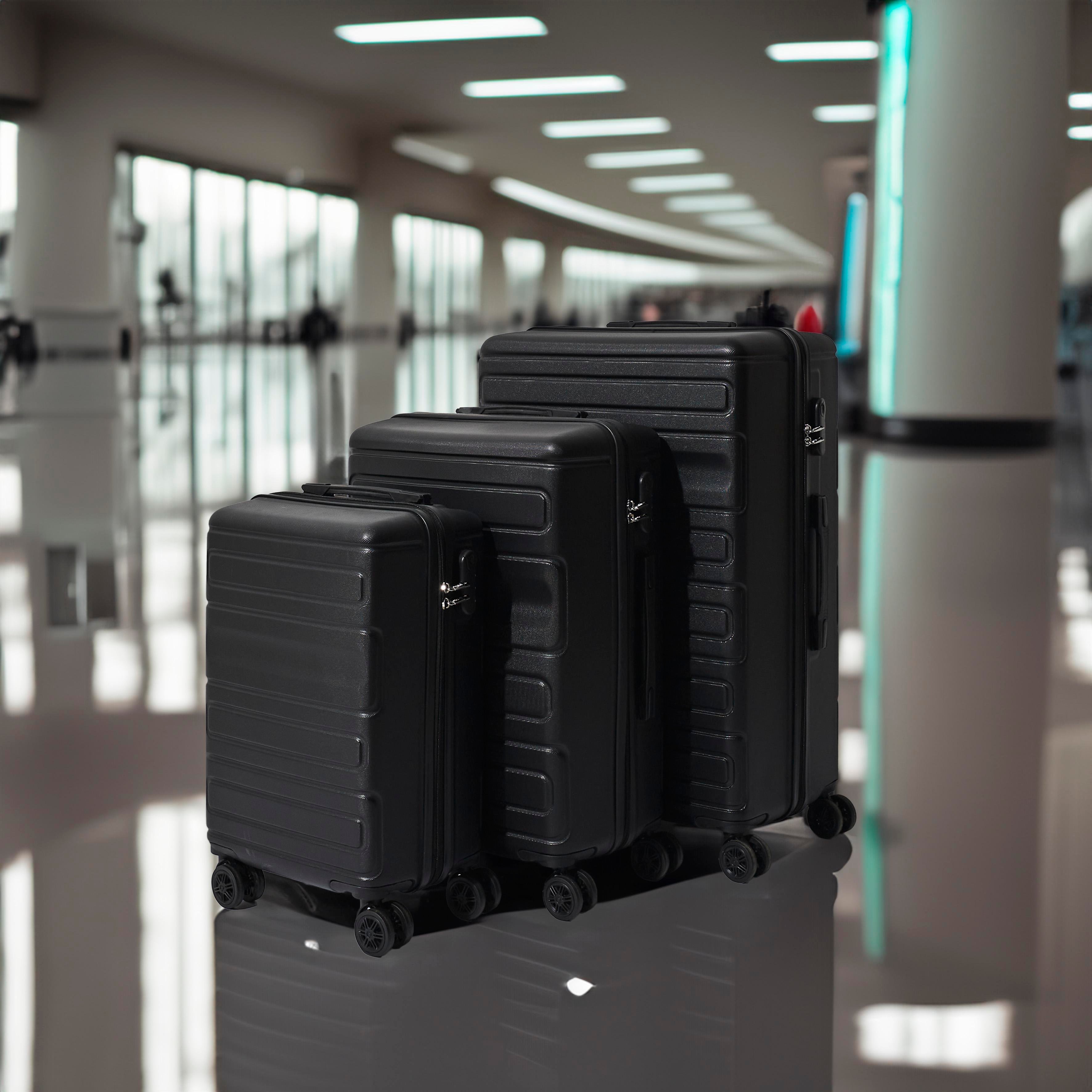 Valise de voyage rigide Solier, valise à roulettes avec serrure à combinaison, grand trolley de voyage ABS XL 90L noir