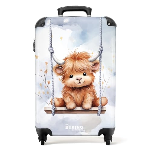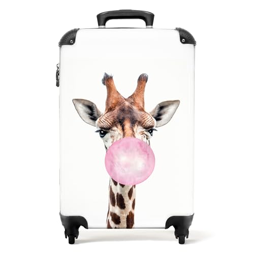NoBoringSuitcases.com Valise Enfant, Bagages Enfant Fille, Valise Cabine 55x35x25cm (Girafe - Blanc)