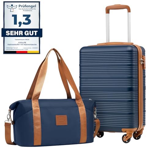 COOLIFE Valise Cabine Ryanair Rigide Bagage Cabine 55x35x20 Valises Leger a 4 Roues,Serrure TSA, en ABS Rigide Valise (Bleu/Marron, 55×40×20 Set de Valises)