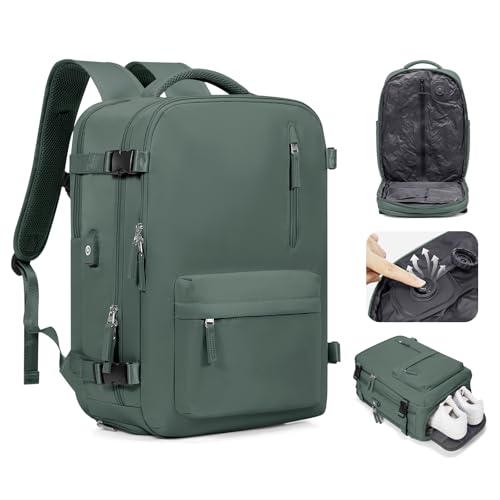 WEPLAN Sac à Dos Voyage Cabine 45x36x20 Easyjet Bagage à Main Ryanair 40x20x25 Bagage Cabine Sac à Dos Valise Cabine Sac à Dos Ordinateur Portable Sac a Dos Loisir Voyage Femme Homme,Vert Armée L
