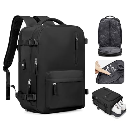 Venchin Sac à Dos Sous Vide avec Pompe, Valise Cabine 45x36x20 Easyjet Extensible, Sac a Dos Voyage 50L Imperméable Multipoches Airbag with Vacuum System Ordinateur 15.6 Pouces Homme Femme Noir
