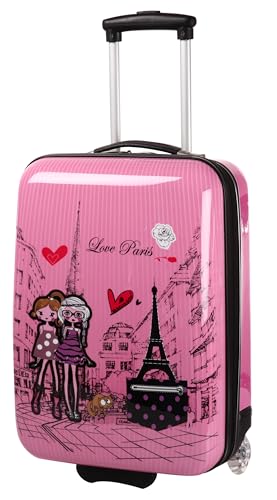 Madisson - Valise Cabine Enfant/Fille Rose Love Paris ABS 50X33X20CM, Rose, L32.0 x H48.0 x P20.0 cm