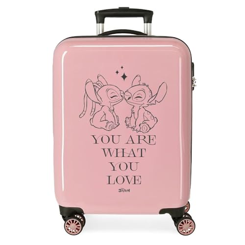 Disney Joumma Stitch You Love Valise Cabine Rose 38 x 55 x 20 cm Rigide ABS Fermeture à Combinaison latérale 34 l 2 kg 4 Roues Bagage Main, Rose Amour, Valise