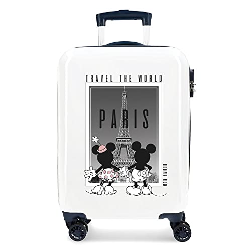 Valise Cabine Disney Mickey et Minnie Travel the World Paris Blanc 38x55x20 cm ABS Rigide Serrure à combinaison latérale 34L 2 kgs 4 Bagage à main double roues