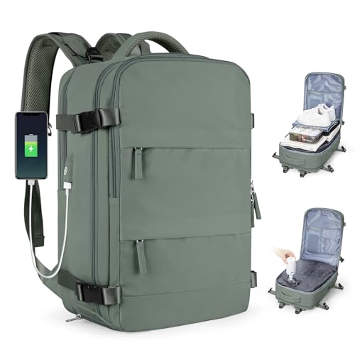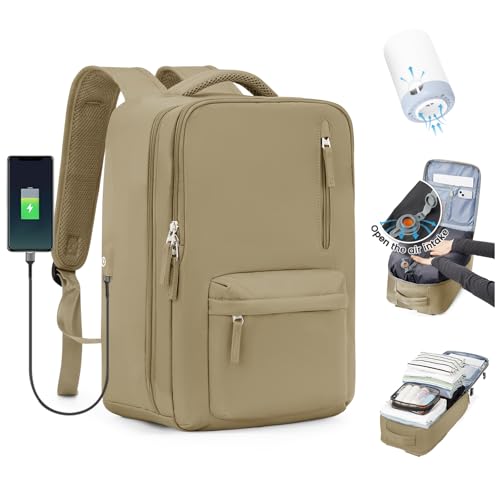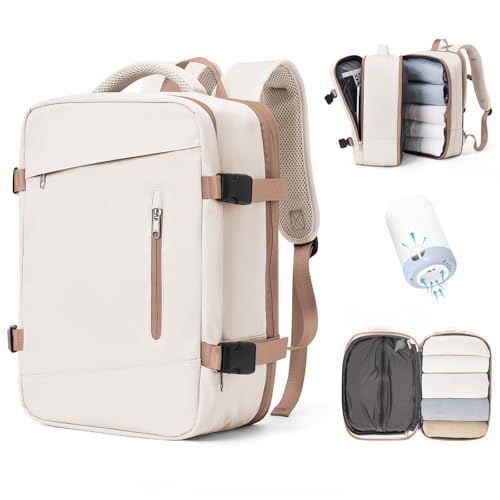MATEIN Sac a Dos Voyage Cabine Avion, Sac à Dos Homme Travail Travel Backpack, Grand Sac a Dos 40L Femme Elegant Leger Bagages Cabine D Affaire Approbation Vol Lufthansa AirFrance Valise Cabine, Beige