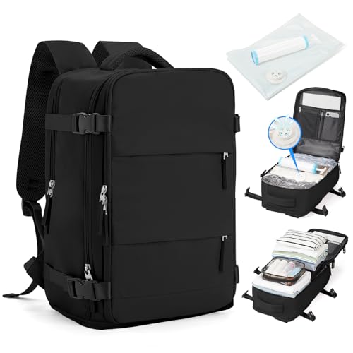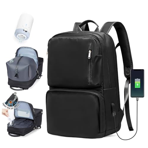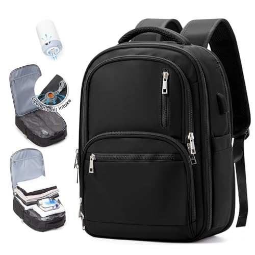 SZLX Sac à Dos de Voyage Sous Vide Avec Pompe à Vide, Sac à Dos Airbag Bagage à Main Femme, Ryanair Travel Ruscksack Taille de Cabine avec Pompe étanche Valise à Vide pour Hommes Noir