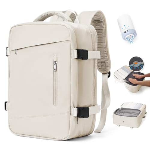 SZLX Sac à Dos Sous Vide Bagage à Main Pour Femmes, Sac à Dos Airbag Avec Système De Vide Pour Le Voyage, Ryanair Travel Ruscksack Taille Cabine Avec Pompe étanche Valise Sous Vide, 45 x 32 x 20cm