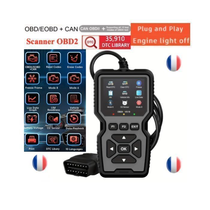 OBD2 diagnostic scanner LECTEUR CODE ERREUR VALISE DIAG AUTO Outils diagnostics Scanner OBDII Lecture Effacement codes