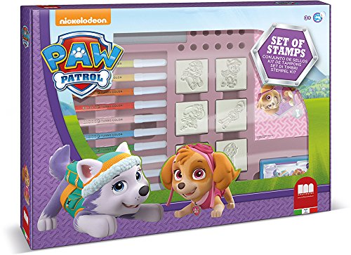 Multiprint Valise 7 Timbres Enfants Paw Patrol Girl, 100% Made in Italy, Tampons Enfants Personnalisés, en Bois et Caoutchouc Naturel, Encre Lavable Non Toxique, Idée Cadeau, Art.07913