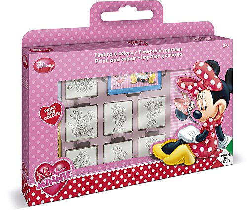 Multiprint Valise 7 Timbres Enfants Disney Minnie, 100% Made in Italy, Tampons Enfants Personnalisés, en Bois et Caoutchouc Naturel, Encre Lavable Non Toxique, Idée Cadeau, Art.07866