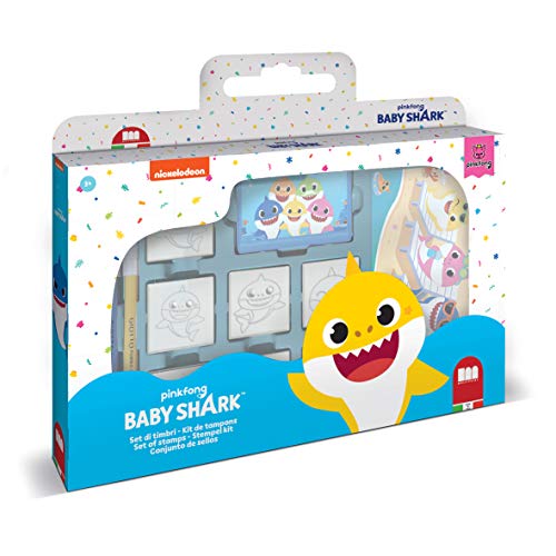 Multiprint Valise 7 Timbres Enfants Baby Shark, 100% Made in Italy, Tampons Enfants Personnalisés, en Bois et Caoutchouc Naturel, Encre Lavable Non Toxique, Idée Cadeau, Art.07995