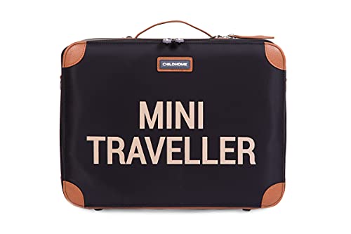 CHILDHOME, Valise Enfant, Week-end, Format Cabine, Compact, Solide, Anse pour transport, Etiquette Nom, Design, Simili Cuir, Mini Traveller Noir/Or
