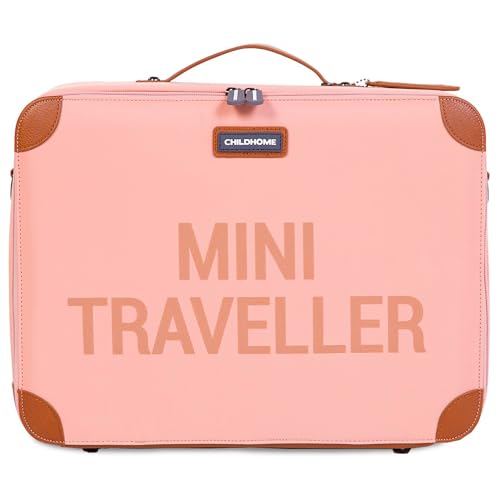 CHILDHOME, Valise Enfant, Week-end, Format Cabine, Compact, Solide, Anse pour transport, Etiquette Nom, Design, Simili Cuir, Mini Traveller Rose/Cuivre