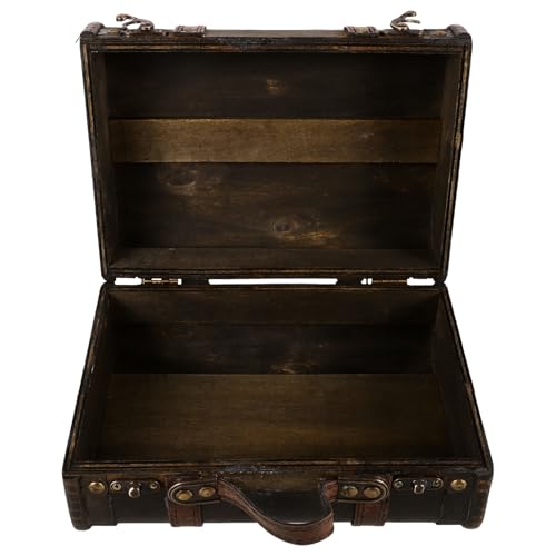 PRETYZOOM Coffre de Rangement Vintage en Bois de Style Britannique, Grosse Valise Décorative Marron en Pu, Boîte à Souvenirs Rustique pour Accessoires Photo Rétro, Organisateur Décoratif