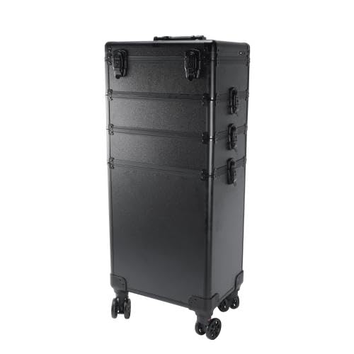 Abician Valise de Maquillage 4 en 1 Valise Esthétique Professionnel à roulettes Valise Coiffure 34× 25,5 × 80,2 cm Noir