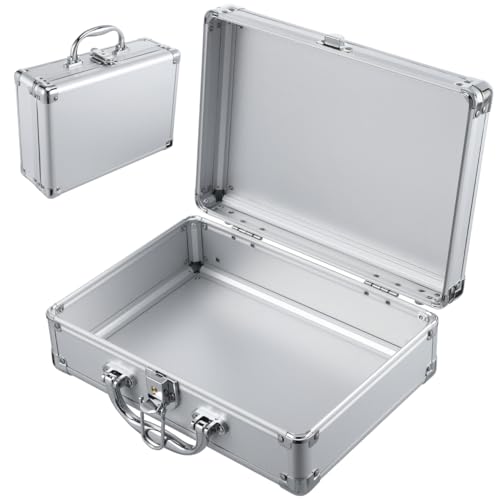 NUOBESTY Mallette Aluminium Rigide 20.5X29X10.5 Cm Portable avec PoignéE Malette Rangement Maquillage Outils Professionnel Valise MéTallique ArgentéE