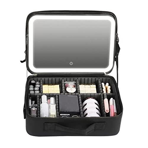 mumisuto Trousse à Maquillage avec LED Miroir, 3 Modes d'Éclairage Trousse de Toilette avec Loupe10x Maquillage, Professionnel Vanity Valise Maquillage avec Compartiment, Grande Capacité