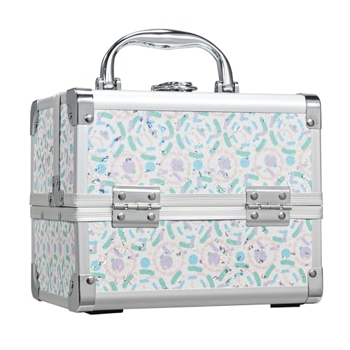 BAKAJI Trolley Make Up Professionnel, Beauty Case Esthéticienne Portable, Valise de maquillage avec trame holéographique à Triangulaire et roues détachables, trousse organisateur de maquillage voyage,