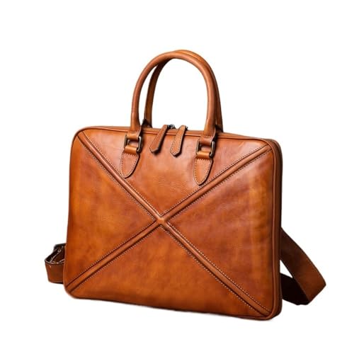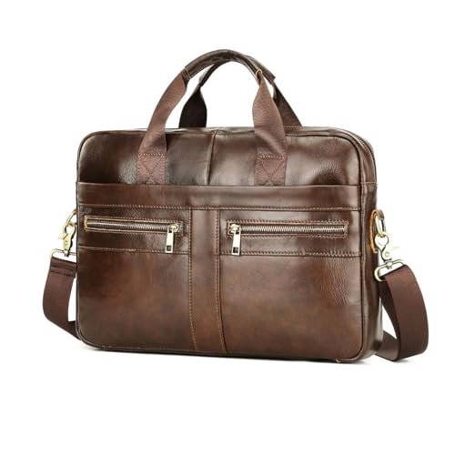 IXMLDAXD La Valise, Sacoche Vintage en Cuir de Vache for Homme, Sac à Main décontracté, bandoulière Marron for Ordinateur Portable 14 Pouces