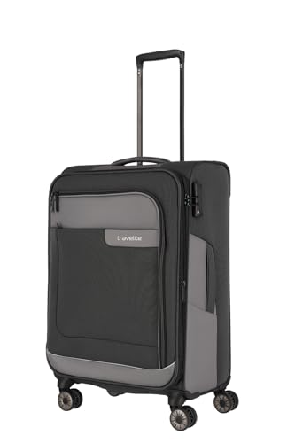 valise travelite 4 roues taille M coque souple en matériau recyclé, bagages série VIIA : trolley avec soufflet extensible + protection des bords, 67 cm, 70 - 80 litres