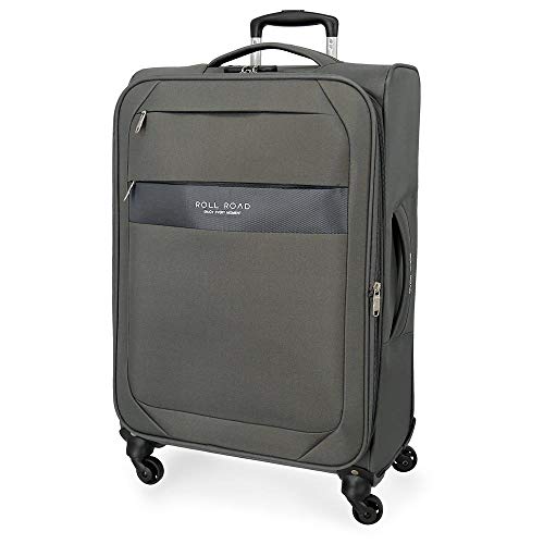 Roll Road Royce Valise Moyenne Gris 43x66x26 cms Souple Polyester Serrure à combinaison 64L 2,6Kgs 4 roues Extensible