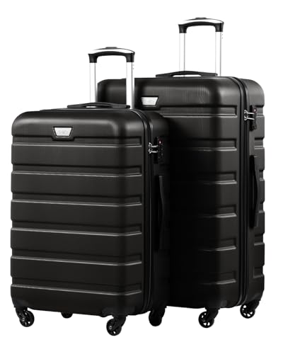 COOLIFE Set de Valise de Voyage 3 Tailles Valise Grande Taille Valise Cabine Petite Valise Sacs de Voyage Valise ABS avec 4 roulettes (Noir, Set de 2 pièces (M + L))