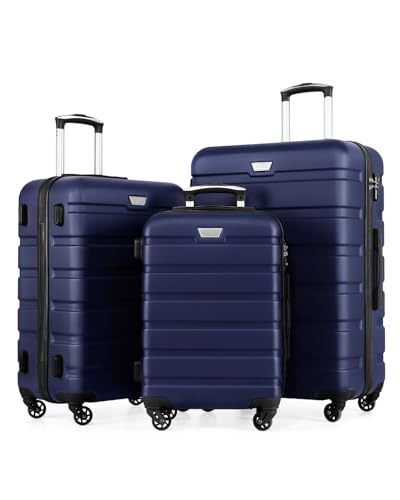 COOLIFE Set de Valise de Voyage 3 Tailles Valise Grande Taille Valise Cabine Petite Valise Sacs de Voyage Valise ABS avec 4 roulettes (Bleu foncé, Set de 3 pièces)