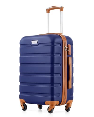 COOLIFE Set de Valise de Voyage 3 Tailles Valise Grande Taille Valise Cabine Petite Valise Sacs de Voyage Valise ABS avec 4 roulettes (Bleu/Brun, 56cm)