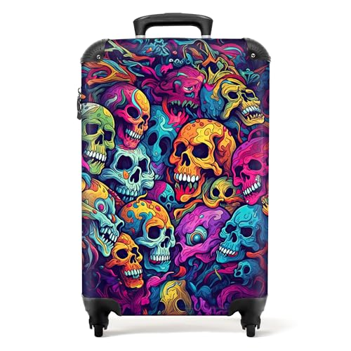 NoBoringSuitcases.com® Valises, Bagages a Main Cabine 55x35x25 10kg, Luggage, Suitcase, Rigides 4 roulettes, De Voyage, Cadenas Avion, Ultra légère, Polycarbonate, Poignée Extensible, Motif crâne
