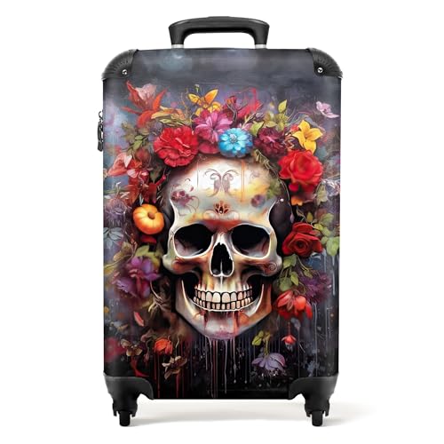 NoBoringSuitcases.com® Valises, Bagages a Main Cabine 55x35x25 10kg, Luggage, Suitcase, Rigides 4 roulettes, De Voyage, Cadenas Avion, Ultra légère, Poignée Extensible, Crâne et Fleurs Sombres